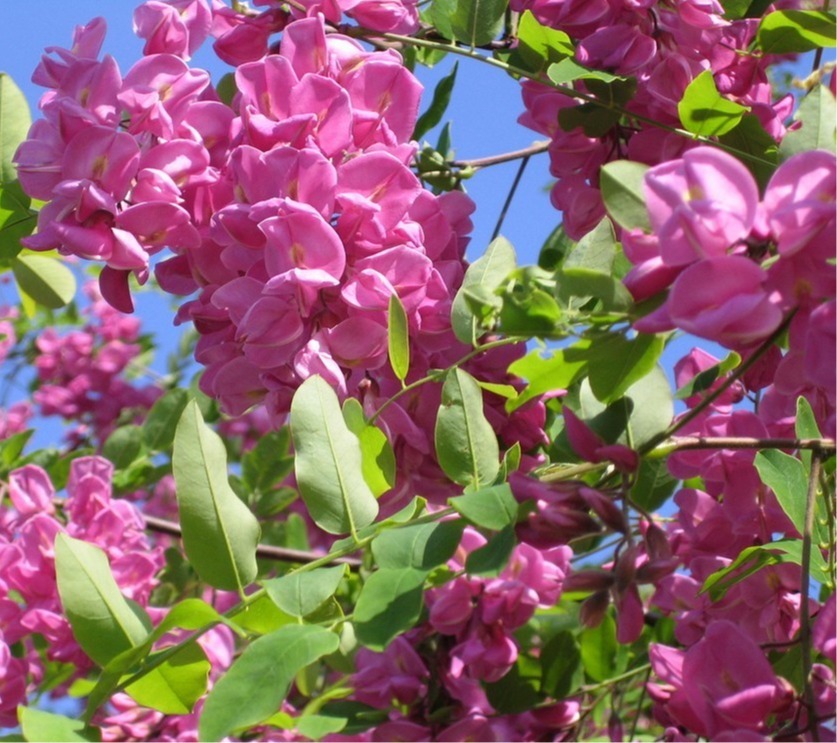 (Robinia pseudoacacia Casque Rouge, также известна как Robinia margaretta 'Casque Rouge', Pink Cascade)
